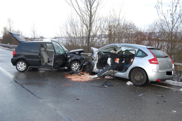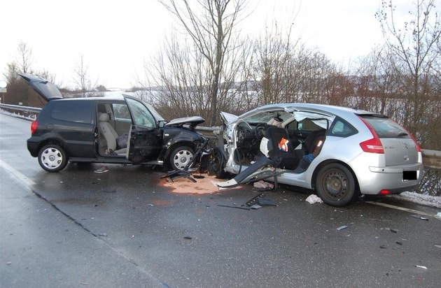Am 14.01.2017 gegen 09.20 Uhr ereignete sich auf der Bundesstraße 48 in Höhe Münchweiler ein Verkehrsunfall mit schwer verletzten Personen. Ein 52-jähriger Mann befuhr mit einem PKW die Bundesstraße in Richtung Enkenbach-Alsenborn. Eine 66-jährige Frau aus Münchweiler fuhr ihm entgegen. Aus bislang ungeklärter Ursache geriet der PKW des Mannes auf die Gegenfahrbahn und stieß mit dem PKW der Frau zusammen. An beiden Fahrzeugen entstand Totalschaden. Beide Fahrzeugführer mussten durch die Feuerwehr aus ihren PKW befreit werden und kamen anschließend schwer verletzt mit dem Rettungshubschrauber in verschieden Krankenhäuser. Die Bundesstraße 48 war in der Zeit von 09.30 Uhr - 12.00 Uhr zwischen der Auffahrt zur Bundesautobahn 63 und der Abfahrt nach Münchweiler gesperrt.