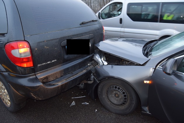 Am Montagmorgen kam es auf der A6 bei Ramstein.Miesenbach zu einem Auffahrunfall mit fünf beteiligten Fahrzeugen. Die Bilanz: fünf beschädigte Fahrzeuge und hoher fünfstelliger Sachschaden. Bei hohem Verkehrsaufkommen mussten zwei Pkw-Fahrer zwischen dem Autobahnkreuz Landstuhl und der Ausfahrt Ramstein-Miesenbach verkehrsbedingt bis zum Stillstand abbremsen. Der nachfolgende 60 jährige Fahrer eines Mercedes Vito erkannte die Situation zu spät und fuhr auf den vor ihm stehenden Pkw auf. Durch den Aufprall wurde dieser auf das vor ihm stehende Fahrzeug geschoben. Unmittelbar hinter diesen Fahrzeugen bremste ein Chrysler Voyoger-Fahrer ebenfalls bis zum Stillstand ab, bevor auf diesen der 60 jähriger Fahrer eines Opel Insignia auffuhr. Auch hier wurde der abbremsende Pkw auf die vor ihm stehen Fahrzeuge aufgeschoben. Der entstandene Gesamtschaden beläuft sich auf ca. 25.000 Euro.