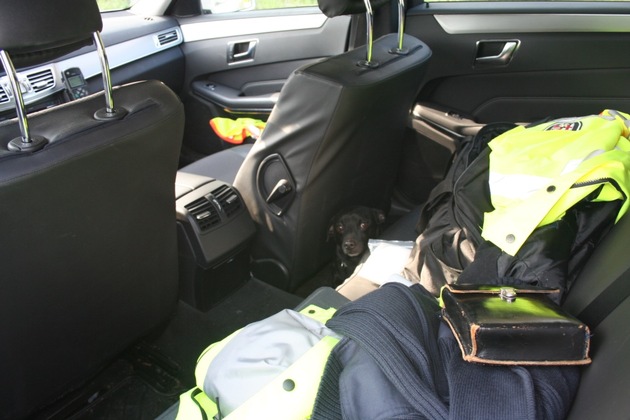 Durch mehrere Verkehrsteilnehmer, die auf dem Parkplatz "Türkberg" an der BAB 6 in Richtung Saarbücken am Samstagnachmittag Rast machten, wurde ein freilaufender Hund gemeldet. Durch die Beamten der Autobahnpolizei KL konnte tatsächlich ein kleiner schwarzer Mischlingshund festgestellt werden. Dieser trug ein grünes Halsband und gab sich zunächst auch zutraulich. Als er jedoch Verdacht schöpfte wohin die Reise gehen sollte, verschwand der "Täter" plötzlich aus dem Sichtfeld der Beamten. Zusammen mit der verständigte Tierrettung Rhein-Neckar, konnte der Flüchtige dann gestellt werden. In einem unbeobachteten Augenblick hatte sich dieser in den offenstehen Streifenwagen geflüchtet und sich hinter dem Beifahrersitz versteckt. Mit vereinten Kräften wurde der "Täter" nun dingfest gemacht und in das Tierheim Kirchheimbolanden eingeliefert.