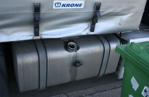 Unbekannte Täter haben in der Nacht zu Mittwoch aus dem Kraftstofftank eines Sattelzuges rund 250 Liter Diesel gestohlen. Der Fahrer hatte auf dem Parkplatz "Potzberg" an der A62 in Fahrtrichtung Pirmasens seine Nachtruhe verbracht. Vor der Weiterfahrt am frühen Morgen bemerkte er den Diebstahl. Durch das gewaltsame Öffnen des mit einem Sicherungssystem ausgestatteten Tankbehälters entstand ein Gesamtschaden von 500 Euro. Von den Tätern fehlt bislang jede Spur. Zeugen, die Hinweise auf verdächtige Personen und/oder Fahrzeuge geben können, werden gebeten, sich unter der Rufnummer 06 31 / 35 34-0 mit der Autobahnpolizei Kaiserslautern in Verbindung zu setzen.