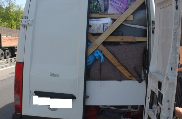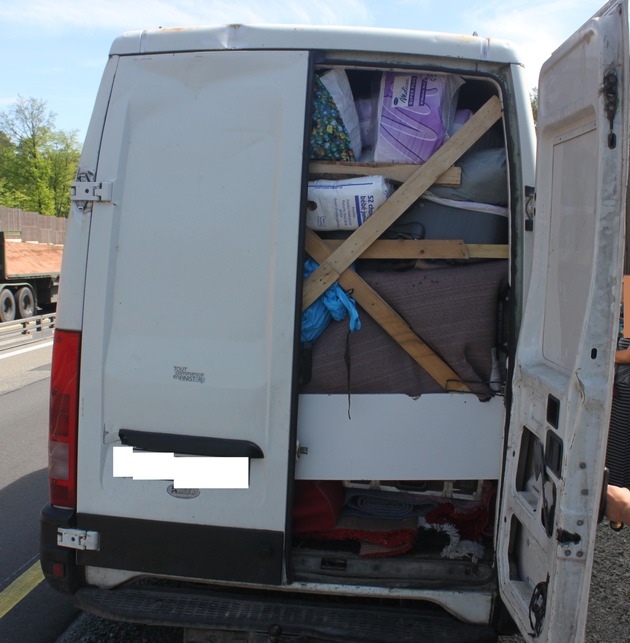 Gestern haben Beamte der Autobahnpolizei einen osteuropäischen Sprinter kontrolliert. Das Fahrzeug war mit einer 5-köpfigen Familie besetzt. Bemerkenswert daran war die Tatsache, dass die Kinder völlig ohne Sicherung im Fußraum, bzw. zwischen dem Gepäck saßen. Bei der weiteren technischen Überprüfung wurden erhebliche Mängel festgestellt, weswegen die Weiterfahrt untersagt wurde. Gegen den Fahrer wird eine OWI-Anzeige erstattet. Er mußte bereits vor Ort eine Sicherheitsleistung von 130EUR bezahlen. Das Fahrzeug wurde abgeschleppt./Se.