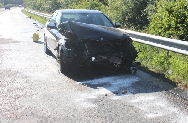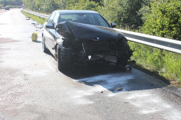 Am 09.06.2017, gegen 17 Uhr ereignete sich auf der A 62 Richtung Trier, zwischen den Anschlussstellen Reichweiler und Freisen ein Verkehrsunfall, bei dem ein Pkw Mercedes nach links von der Fahrbahn abkam und gegen die Mittelschutzplanken prallte. Anschließend schleuderte der Pkw nach rechts und kam entgegen der Fahrtrichtung auf dem Seitenstreifen zum Stehen. Der Fahrer flüchtete zu Fuß von der Unfallstelle. Eine sofort eingeleitete Fahndung nach dem Fahrer blieb erfolglos. Am Pkw entstand Totalschaden. Zur Unfallaufnahme und Bergung des Pkw musste der rechte Fahrstreifen gesperrt werden. Der Gesamtschaden beträgt ca. 17 000,- EUR. Gesucht werden Zeugen, die Angaben zum Unfallhergang machen können. Diese werden gebeten sich bei der Autobahnpolizei Kaiserslautern zu melden. Tel: 0631-35340