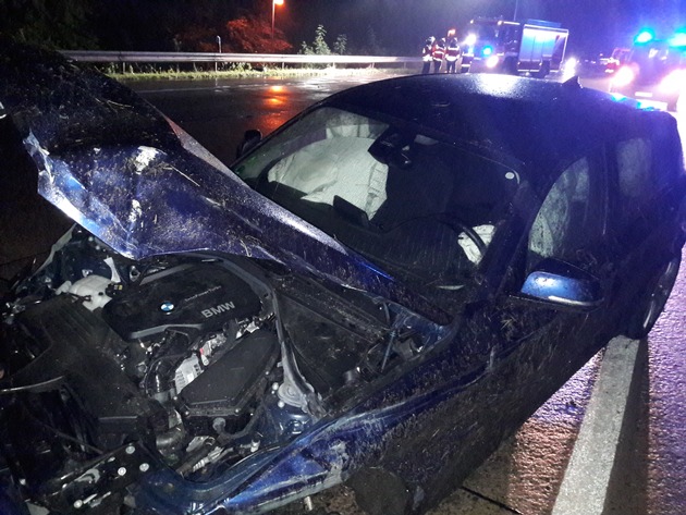 Neun Verletzte Personen und zwei erheblich beschädigte Fahrzeuge waren die Folge eines Verkehrsunfalls, der sich am Sonntagnacht um 22:45 Uhr auf der A6 zwischen den Anschlussstellen Kaiserslautern/Ost und Enkenbach-Alsenborn zugetragen hat. Der Fahrer eines BMW 1er fuhr kurz vor dem Parkplatz "Quaidersberg" ungebremst auf das Heck eines vor ihm fahrenden Mercedes Sprinter auf. Durch den Aufprall verloren die Fahrer die Kontrolle über ihre Fahrzeuge und krachten in die Schutzplanken. Der Unfallverursacher entfernte sich anschließend zu Fuß von der Unfallstelle. Nach erfolgter Ermittlung des Fahrzeugeigentümers konnte der regelmäßige Benutzer des Pkw festgestellt werden. Dieser streitet die Fahrereigenschaft zum Unfallzeitpunkt jedoch ab. Weitere Überprüfungen diesbezüglich dauern an. Die neun Insassen des Sprinter erlitten durch den Unfall Verletzungen und wurden mit Rettungswagen in umliegende Krankenhäuser gefahren. Der entstandene Sachschaden beläuft sich auf 30.000 Euro. Während der Unfallaufnahme und der Bergungsarbeiten war die A6 in Richtung Mannheim gesperrt. Zeugen, die sachdienliche Hinweise zum Fahrer des BMW machen können, werden gebeten, sich unter der Rufnummer 0631 - 3534-0 mit der Polizeiautobahnstation Kaiserslautern in Verbindung zu setzen.