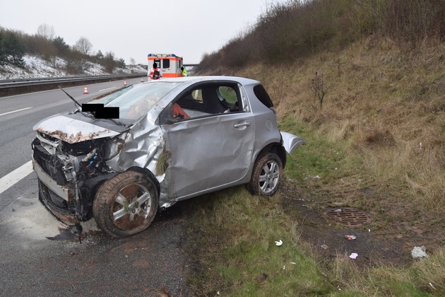 Eine 30 jährige Fahrerin eines Toyota IQ verlor am Dienstagvormittag die Kontrolle über ihr Fahrzeug. Beim Befahren der A63 zwischen den Anschlussstellen Göllheim und Winnweiler, kam sie nach rechts von der Fahrbahn ab und geriet in die unbefestigte, ansteigende Böschung. Dort überschlug sie sich mehrmals mit ihrem Fahrzeug und kam anschließend wieder auf den Rädern stehend zum Stillstand. Die Toyota-Fahrerin erlitt leichte Verletzungen und wurde mit einem Rettungswagen in ein Krankenhaus gefahren. Der entstandene Sachschaden beläuft sich auf rund 12.000 Euro.
