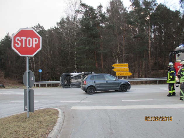POL-PDKL: Vorfahrtsmissachtung - Pkw liegt auf der Seite - zwei Leichtverletzte