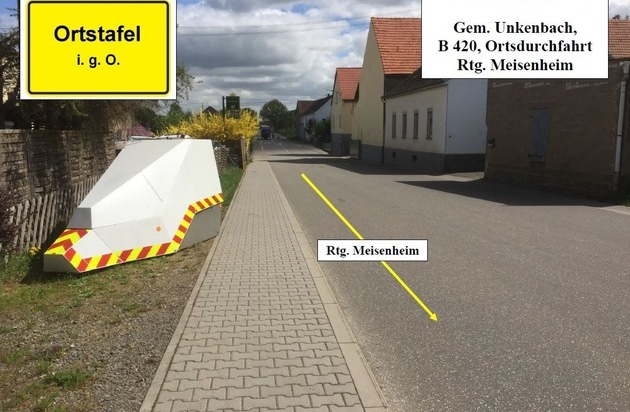 POL-PDKL: Verkehrsüberwachung in Unkenbach, B 420 Einsatz des mobilen Geschwindigkeitsmessgerätes im westlichen Donnersbergkreis