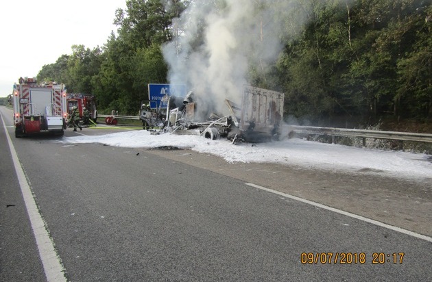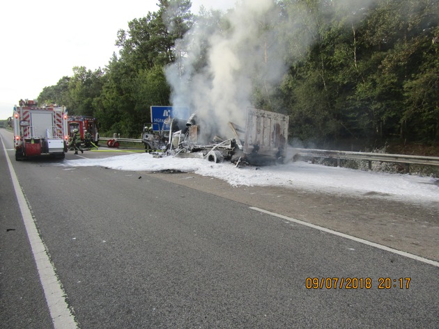 Am 09.07.2018, 20:30 Uhr geriet auf der A 62 Richtung Trier, zwischen dem Kreuz Landstuhl und der Ausfahrt Hütschenhausen der Lkw eines Reifendienstes aufgrund eines technischen Defekts in Brand. Der Fahrer konnte den Lkw noch auf dem Seitenstreifen anhalten und sich in Sicherheit bringen. Trotz sofortigem Löschangriff durch die Feuerwehren Landstuhl und Ramstein-Miesenbach brannte der Lkw komplett aus. Es entstand ein Schaden von ca. 40 000,-EUR. Die Richtungsfahrbahn Trier musste für 1 Stunde gesperrt werden.