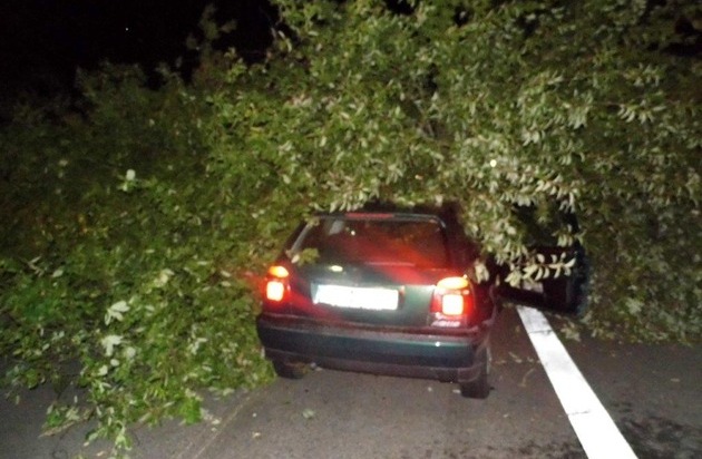 Ein Autofahrer ist am späten Mittwochabend im Rauschenweg in einen umgestürzten Baum gekracht - an seinem Wagen entstand ein Sachschaden von rund 4.000 Euro. Der Mann war gegen Mitternacht in Richtung Hohenecker Straße unterwegs, als der Baum während des stürmischen Wetters auf die Fahrbahn stürzte und die Motorhaube des Fahrzeuges traf. Daneben wurden neun laufende Meter Schutzplanke beschädigt. Menschen kamen zum Glück nicht zu Schaden.