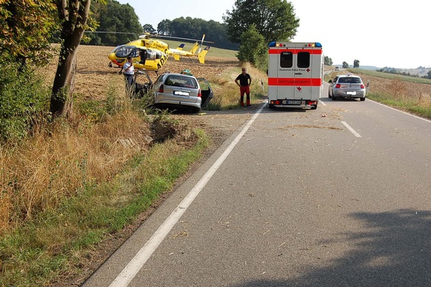Im Fußraum hat ein PKW-Fahrer nach einem kleinen Gegenstand getastet und ist dabei am Donnerstagabend von der Straße abgekommen. Mit dem Rettungshubschrauber wurde der Mann ins Krankenhaus geflogen. Der 55-Jährige war mit seinem PKW auf der L 234 von Rehborn in Richtung Meisenheim gefahren. Nach einer leichten Linkskurve beugte er sich in den Fußraum und lenkte dabei den Wagen ungewollt nach rechts.