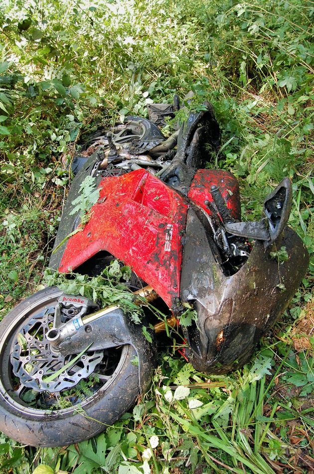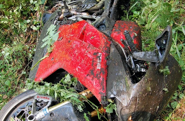 Aufgrund offensichtlich nicht angepasster Geschwindigkeit kam ein 54-jähriger Motorradfahrer aus Zweibrücken am Sonntagnachmittag auf der L475 zwischen Weihermühle und Kneispermühle in einer langgezogenen Rechtskurve von der Fahrbahn ab. Mit seiner Ducati schleuderte er über die Gegenfahrbahn, dann die Böschung hinunter und kam erst kurz vor dem Wasser der Wallhalb zum Liegen. Der Fahrer musste von der Freiwilligen Feuerwehr Wallhalben und dem Rettungsdienst geborgen werden. Er wurde schwer verletzt ins Krankenhaus transportiert. Am Motorrad entstand Totalschaden.