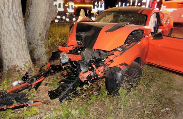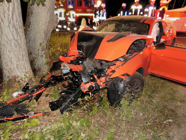 Der Ford Mustang wurde durch den Aufprall total beschädigt. Der Sachschaden liegt bei etwa 20.000 Euro.