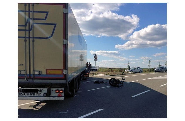 Ein schwerverletzter Motorradfahrer und ca. 10.000 Euro Sachschaden - das ist die Bilanz eines Verkehrsunfalls, der sich am Donnerstag (10.09.) gegen 14:15 Uhr auf der L 465 zwischen der Einmündung der K 4 und der Einmündung der Amerikastraße ereignete. In diesem Streckenabschnitt überholte ein 41-jähriger Motorradfahrer aus Richtung Mörsbach kommend eine Fahrzeugschlange, die sich hinter einem Traktor gebildet hatte. Als er den Traktor überholt hatte, bog ein entgegenkommender Sattelzug nach links in die Amerikastraße ab, ohne den Vorrang des Motorradfahrers zu beachten. Der Motorradfahrer krachte seitlich in den Sattelzug und wurde dabei schwer verletzt.