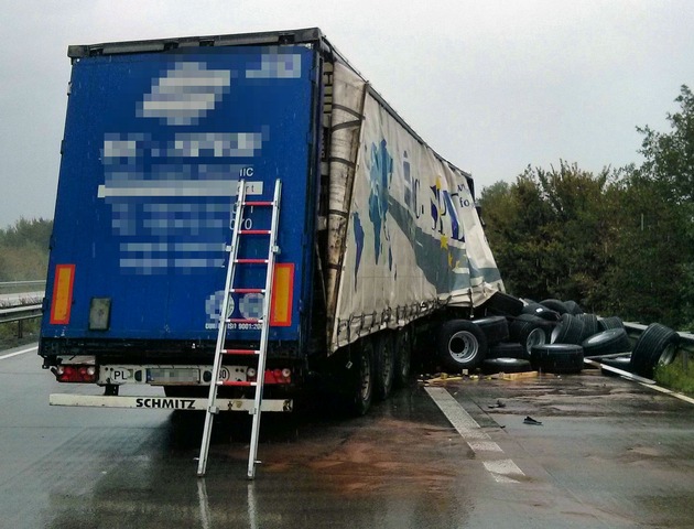 Der vierte Lkw hatte Kompletträder geladen (also Reifen samt Felgen), die durch den Unfall die seitliche Bordwand durchbrachen und sich teilweise auf der Fahrbahn verteilten. Weil jedes dieser Kompletträder ein Gewicht von rund 90 Kilo hat, war auch hier das Bergen und Umladen nicht gerade einfach und vor allem zeitaufwändig.