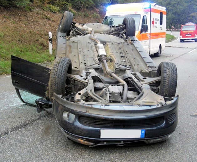 Ein Autofahrer hat am Dienstagvormittag auf der B270 im Bereich Walzweiher seinen Pkw aufs Dach gelegt. Der 63-jährige Mann war auf dem Weg in Richtung Schopp, als er gegen 9.15 Uhr eigenen Angaben zufolge in einer Kurve mit seinem Opel Vectra gegen den erhöhten Bordstein stieß. Daraufhin habe sich das Fahrzeug quer gestellt, geriet in die Böschung, fiel dann zurück auf die Fahrbahn und kippte aufs Dach.