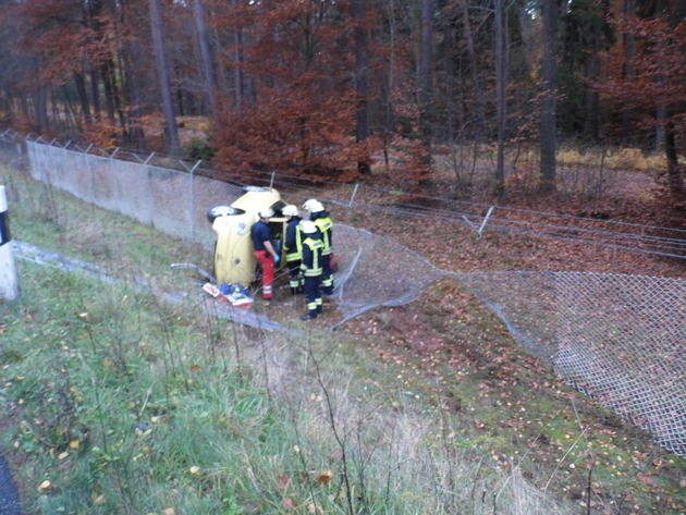Ein schwerer Unfall hat sich am Samstagmittag auf der K 25 zwischen Rodenbach und Kaiserslautern ereignet. Vermutlich aufgrund nicht angepasster Geschwindigkeit verlor der 27-jährige Fahrer in einer Linkskurve die Kontrolle über sein Auto und kam nach rechts von der Fahrbahn ab. Dort durchbrach er einen Zaun der US-Streitkräfte und kam auf der Fahrzeugseite zum Liegen. Der alleine im Fahrzeug befindliche Fahrer wurde bei dem Unfall schwer verletzt und musste von Rettungskräften aus dem Pkw befreit werden. Der Sachschaden dürfte sich auf etwa 10.000,- Euro belaufen.