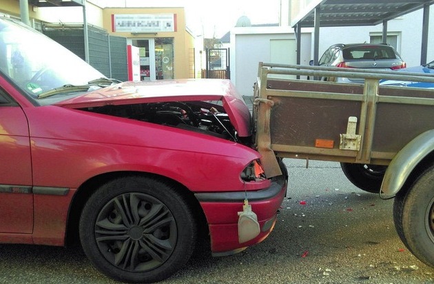 Weil er offenbar einen Moment nicht richtig aufgepasst und auch nicht den nötigen Sicherheitsabstand zum Vordermann eingehalten hat, hat ein junger Autofahrer am Samstagnachmittag in Otterbach einen Unfall verursacht. Der 18-Jährige aus dem Landkreis fuhr mit seinem Pkw ortseinwärts in Richtung Lauterstraße hinter einem Pick-up mit Anhänger her. Dessen Fahrer musste kurz vor 15 Uhr verkehrsbedingt bremsen. Das merkte der junge Mann im Opel Astra dahinter zu spät - er konnte nicht mehr rechtzeitig anhalten und krachte auf den Anhänger.