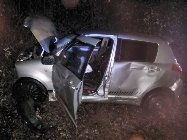 Nach den bisherigen Erkenntnissen hatte eine junge Autofahrerin, die über die A6 aus Richtung Saarbrücken gekommen war, die Autobahn gegen 20.45 Uhr an der Ausfahrt im Bereich KL-Einsiedlerhof verlassen und wollte auf der B270 in Richtung Hohenecken weiterfahren. In der Rechtskurve kam die 22-Jährige jedoch mit ihrem Suzuki Swift von der Fahrbahn ab und geriet auf den unbefestigten Seitenstreifen. Nachdem der Wagen einen Leitpfosten gestreift hatte, versuchte die Fahrerin gegenzulenken. Dabei kam der Pkw jedoch ins Schleudern und stieß mit einem Smart For Four zusammen, der auf der rechten Fahrspur in Richtung Hohenecken unterwegs war. Durch die Kollision wurde der Suzuki zurückgeschleudert und landete in der Böschung neben der Straße. Der Smart kam auf der B270 zum Stehen.