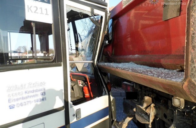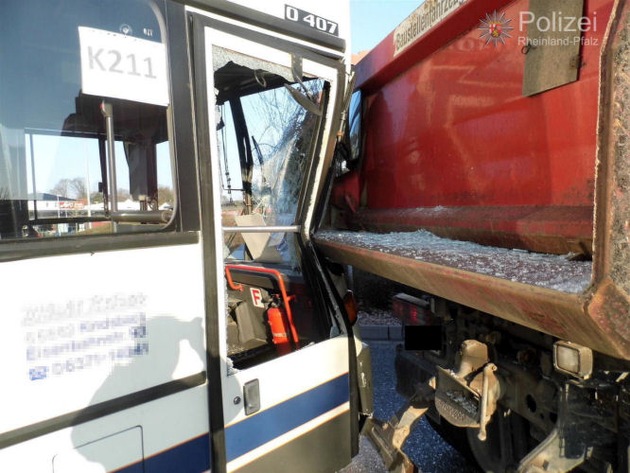 POL-PPWP: Bus rammt Brummi - Totalschaden