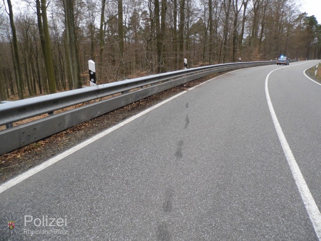 Glück im Unglück hatte ein 19-jähriger Motorradfahrer, der am Montagnachmittag auf der Bundesstraße 48 gestürzt und gegen die Leitplanke gestoßen ist - er zog sich nur leichte Verletzungen zu. Der aus Kaiserslautern stammende junge Fahrer war gegen 16.45 Uhr in Richtung Johanniskreuz unterwegs. Etwa 400 Meter nach der Kreuzung B 48/L 504 stürzte er in einer Rechtskurve. Anschließend rutschte er quer über die Fahrbahn und prallte gegen die gegenüber liegende Leitplanke. Der 19-Jährige zog sich Prellungen und eine Verletzung am Fuß zu. An seinem Motorrad entstand ein Sachschaden von rund 4.000 Euro.