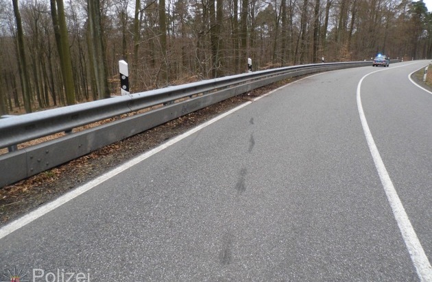 Glück im Unglück hatte ein 19-jähriger Motorradfahrer, der am Montagnachmittag auf der Bundesstraße 48 gestürzt und gegen die Leitplanke gestoßen ist - er zog sich nur leichte Verletzungen zu. Der aus Kaiserslautern stammende junge Fahrer war gegen 16.45 Uhr in Richtung Johanniskreuz unterwegs. Etwa 400 Meter nach der Kreuzung B 48/L 504 stürzte er in einer Rechtskurve. Anschließend rutschte er quer über die Fahrbahn und prallte gegen die gegenüber liegende Leitplanke. Der 19-Jährige zog sich Prellungen und eine Verletzung am Fuß zu. An seinem Motorrad entstand ein Sachschaden von rund 4.000 Euro.