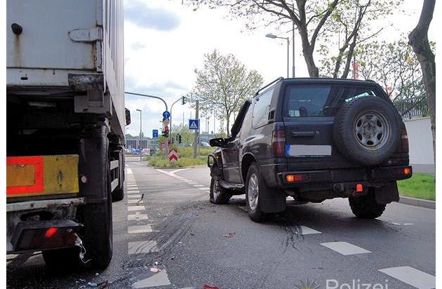 Der 49-Jährige kam gegen 18.45 Uhr mit seinem Opel Frontera aus der Berliner Straße und wollte nach rechts in Richtung Reichswaldstraße abbiegen. Wegen der tiefstehenden Sonne - so seine Aussage - übersah der Mann dabei jedoch einen Lkw, der an der Ampel an der Kreuzung Berliner Straße/Reichswaldstraße angehalten hatte. Dadurch prallte der Opel-Fahrer mit seiner linken Fahrzeugseite gegen die rechte Heckseite des Lkw-Anhängers.