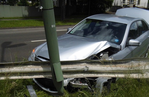 Der Autofahrer war gegen Mittag auf der Bundesstraße 37 nach Kaiserslautern unterwegs, als er plötzlich einen Schwindelanfall erlitt. Der Mann verlor die Kontrolle über seinen Wagen und kam von der Fahrbahn ab. Das Auto stieß auf dem Mittelstreifen gegen eine Schutzplanke und eine Straßenlaterne. Am Wagen entstand Totalschaden. Die Gesamtschadenshöhe wird auf mehrere zehntausend Euro geschätzt. Die stark beschädigte Laterne wurde von der Feuerwehr abmontiert.