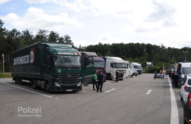 Eine hohe Beanstandungsquote war am ersten Tag der Schwerverkehrskontrollen an der A 6 zu verzeichnen - von 48 kontrollierten Fahrzeugen wurden 31 und damit knapp zwei Drittel beanstandet. Bei den Kontrollen an den Parkplätzen Türkberg und Schweinsdell ergaben sich 13 Anzeigen - vorrangig wegen nicht gesicherter Ladung und Überladung. In drei Fällen mussten ausländische Fahrer eine Sicherheitsleistung bezahlen. Elf Lastwagen durften aufgrund festgestellter Mängel nicht mehr weiterfahren. Daneben leiteten die Kontrollkräfte ein Vermögensabschöpfungsverfahren ein und fertigen acht Berichte an die Gewerbeaufsicht sowie an das Bundesamt für Güterfernverkehr. Jeweils einmal ergab sich der Verdacht eines Verstoßes gegen den Mindestlohn und eines Leistungsmissbrauchs. Fünf ausländische Brummifahrer mussten Geldbußen aus zurückliegenden Verfahren bezahlen, die im Fahndungssystem notiert waren - insgesamt rund 2.000 Euro. Seit Montagmorgen kontrolliert die Polizei an der A 6 im Rahmen von Schwerverkehrskontrollen den gewerblichen Güterverkehr. Die Kontrollen dauen noch bis Dienstagnachmittag. Die Beamtinnen und Beamten des Polizeipräsidiums Westpfalz werden dabei durch Fachkräfte der Polizeipräsidien Mainz und Rheinpfalz sowie des Landeskriminalamtes, der Landespolizeischule und der Zentralen Bußgeldstelle unterstützt. Insgesamt sind knapp 40 Kontrollkräfte im Einsatz.