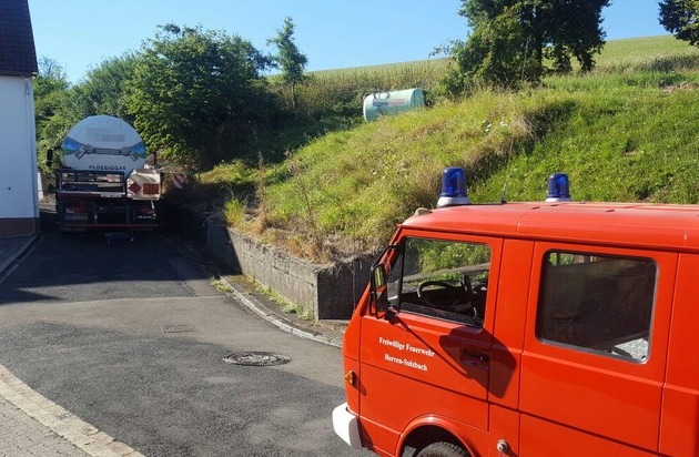 Wie gegen 14.30 Uhr bekannt wurde, strömte aus einem Tankbehälter Gas aus. Ein defektes Ventil ließ sich nicht schließen. Die Feuerwehren Herren-Sulzbach und Lauterecken sowie Einsatzkräfte der Polizei sperrten den Bereich um den Gastank sicherheitshalber ab. Der 5.000 Liter fassende Tank versorgte ein Wohnhaus mit Energie für Heizung und Warmwasser. Eine Fachfirma dichtete den Tank ab und pumpte das flüssige Propan-Gas in ein Spezialfahrzeug um. Als Ursache für das ausströmende Gas konnte ein Haarriss in der Ventil-Armatur festgestellt werden. Bereits gegen 17 Uhr kehrten alle Anwohner wieder zurück in ihre Häuser.