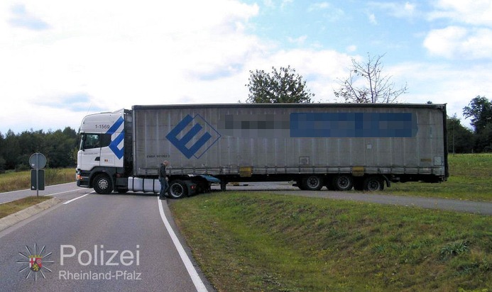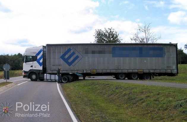 Auch durch Hochkurbeln des Aufliegers gelang es dem Mann zunächst nicht, die Zugmaschine frei zu bekommen. Erst ein Lkw-Fahrer, der zufällig seinem Allrad-Lkw vorbeikam, konnte helfen und den Sattelzug wieder auf die Straße ziehen.