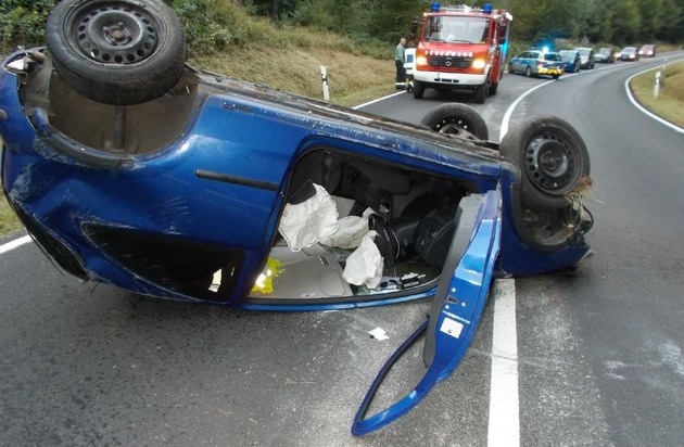 POL-PPWP: Unfall: Personenwagen landet auf dem Dach
