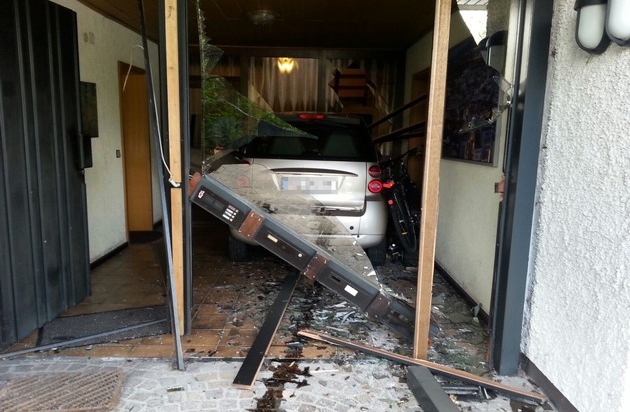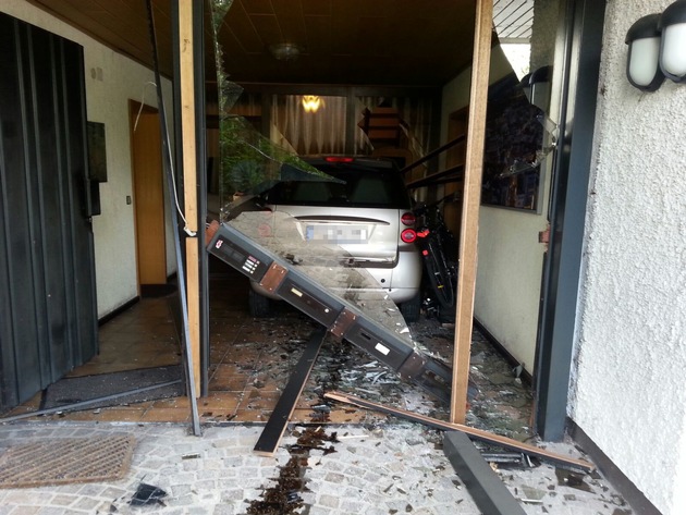 POL-PPWP: Unfall: Auto "parkt" im Wohnhaus
