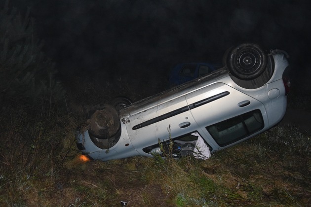 Glück im Unglück hatte am frühen Sonntagmorgen ein 21-Jähriger aus dem Landkreis. Er befuhr mit seinem PKW die kurvenreiche Strecke von Mehlingen nach Enkenbach. Dabei kam er aus Unachtsamkeit zunächst nach rechts von der Fahrbahn ab und überfuhr einen Leitpfosten. Beim Versuch sein Fahrzeug wieder unter Kontrolle zu bringen, geriet er zunächst nach links auf die Gegenfahrbahn, auf der glücklicherweise zu diesem Zeitpunkt niemand entgegen kam. Anschließend kam er erneut nach rechts von der Fahrbahn ab und rutschte eine Böschung hinunter, wo sein Fahrzeug auf dem Dach liegen blieb. Der junge Mann konnte sich mit einem mitgeführten Nothammer selbst befreien. Er wurde durch das DRK vorsorglich in das Westpfalzklinikum verbracht. Am PKW dürfte wirtschaftlicher Totalschaden entstanden sein.