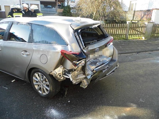 Zwei total beschädigte Fahrzeuge und ein Sachschaden von rund 30.000 Euro sind das Ergebnis eines Unfalls, der sich am Samstagmorgen in der Hauptstraße ereignet hat. Gegen 9 Uhr war der 24-Fahrer eines Paketdienstes in Richtung Linden unterwegs und krachte gegen einen ordnungsgemäß am Straßenrand geparkten Personenwagen - vermutlich infolge Unachtsamkeit. Beide Fahrzeuge waren nicht mehr fahrbereit und mussten abgeschleppt werden. Neben der Polizei war die Feuerwehr im Einsatz und übernahm die Verkehrsregelung sowie die Reinigung der Straße. Die Hauptstraße war an der Unfallstelle für etwa eine Stunde gesperrt.