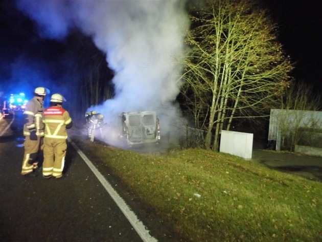Glück im Unglück hatte ein 48-jähriger Autofahrer am frühen Samstagmorgen. Aufgrund eines Sekundenschlafes kam der Mann mit seinem Auto auf der L 502 kurz vor dem Ortsausgang Espensteig nach rechts auf den Grünstreifen und stieß mit der rechten Fahrzeugseite gegen einen Baum. Das Auto fing direkt an zu brennen. Der Fahrer konnte sich jedoch unverletzt aus dem Fahrzeug retten. Sein Auto brannte komplett ab. Der entstandene Schaden beläuft sich auf ca. 8000 Euro.