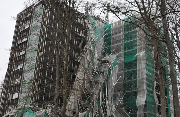 In der Hegelstraße in Kaiserslautern riss der Sturm gegen 3 Uhr ein Baugerüst um. Das Gerüst stand an der Außenfassade eines Hochhauses bevor es zusammenbrach. Dabei wurde auch das Gebäude beschädigt. Weil durch den Sturm die Gefahr bestand, dass weitere Gerüststeile umstürzen könnten, sperrte die Polizei den Bereich weiträumig ab.