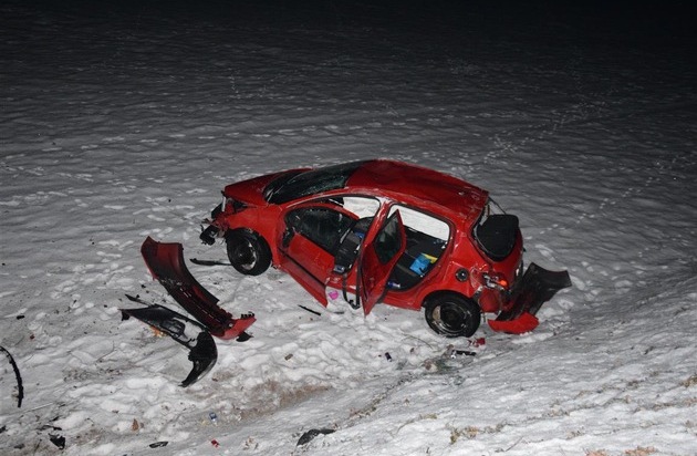 Glimpflich verlaufen ist ein Verkehrsunfall, der sich in der Nacht von Montag auf Dienstag auf der L 382 zwischen Otterberg und Baalborn ereignet hat. Eine aus dem Donnersbergkreis stammende 32-Jährige verlor in einer Rechtskurve die Kontrolle über ihren Kleinwagen, weshalb sie nach links von der Straße abkam. Das Fahrzeug rutschte anschließend quer über ein angrenzendes Feld und überschlug sich mehrfach. Die Fahrzeugführerin konnte sich selbst aus ihrem stark beschädigten PKW befreien und begab sich zur nächsten Ortschaft. Dort half ihr ein Passant und forderte Hilfe an. Die Fahrerin wurde vom DRK ins Klinikum verbracht. Nach ersten Erkenntnissen trug sie nur leichte Verletzungen davon. Für die Bergung des PKW musste die L 382 kurzzeitig gesperrt werden.