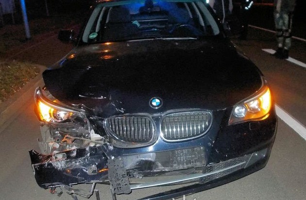 Die ausgerückte Streife entdeckte während der Ermittlungen rund eine Stunde später in der Mainzer Straße einen Pkw mit starken Beschädigungen im Frontbereich, der in Richtung Eselsfürth fuhr. Die Beamten wendeten, folgten dem Wagen und gaben dem BMW-Fahrer mit Blaulicht und Schriftbalken "Stop - Polizei" Anhaltezeichen.
