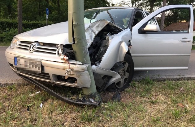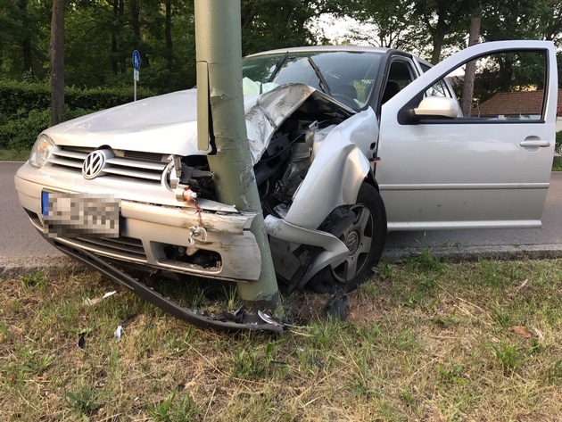 Ein Autofahrer fuhr gegen 20:30 Uhr auf der Mannheimer Straße stadteinwärts. Plötzlich sei ihm im Wageninnern eine Biene vors Gesicht geflogen, schilderte der 45-Jährige. Weil er gegen Bienen allergisch sei, war der Mann in Panik geraten und zog das Steuer ruckartig nach links. Er kam mit seinem Auto von der Fahrbahn ab und knallte gegen einen Laternenpfosten. Bei dem Unfall lösten zwei Airbags aus. Leicht verletzt wurde der Fahrer ins Krankenhaus gebracht. Die "Unfallverursacherin" kam mit dem Schrecken davon, sie saß etwas benommen im Auto. Die Stadtwerke Kaiserslautern prüfte die Standfestigkeit der Laterne und sicherte sie. Weil das Auto des 45-Jährigen nicht mehr fahrbereit war, wurde der Pkw abgeschleppt.