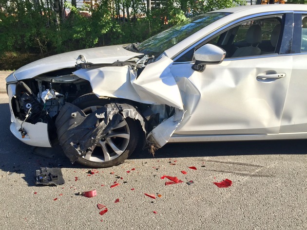 Weil ein Autofahrer zu wenig Sicherheitsabstand zum Vorausfahrenden einheilt, kam es am Freitagabend zu einem Verkehrsunfall mit hohem Sachschaden. Ein 21-jähriger Autofahrer war mit seinem Mazda in der Von-Miller-Straße in Fahrtrichtung Adam Opel AG unterwegs, als ein vor ihm fahrender Lkw zum Abbiegen abbremste. Der Fahrer des Mazdas nahm dies zu spät wahr und konnte aufgrund zu geringen Sicherheitsabstands nicht mehr rechtzeitig anhalten. Der Pkw wurde durch den Aufprall stark beschädigt und musste abgeschleppt werden. Auch an dem Anhänger des Lkw war Sachschaden entstanden. Der Gesamtschaden wird auf etwa 8 000 Euro geschätzt.