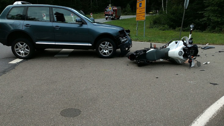Am Sonntagabend wurde der Polizei Kaiserslautern ein Verkehrsunfall mit einem Motorradfahrer gemeldet. Ein 53-jähriger Motorradfahrer hatte die B 48 von Jo-hanniskreuz in Richtung Hochspeyer mit einer Sozia befahren. Ein 35-jähriger PKW-Fahrer befuhr die L 504 in Fahrtrichtung Waldleiningen. An der Kreuzung L 504 / B 48 kam es zur Kollision der beiden Fahrzeuge. Der Motorradfahrer wurde schwerverletzt, seine Sozia und die Beifahrerin im PKW wurden leicht verletzt. An den beiden Fahrzeugen entstand ein Sachschaden in Höhe von ca. 10.000 Euro. Die Strecke war ca. 2 Stunden voll gesperrt. An der Unfallstelle waren drei Rettungsfahrzeuge, ein Rettungshubschrauber und 23 Kräfte der Feuerwehren Hochspeyer, Waldleiningen und Mölschbach im Einsatz. Zur Unfallrekonstruktion wurde ein Gutachter hinzugezogen.