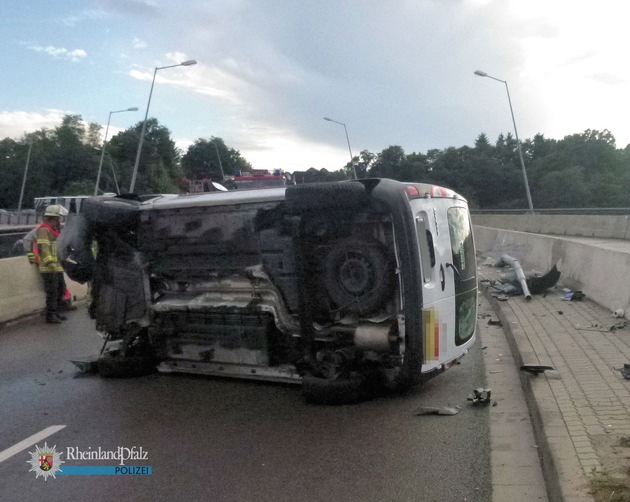 Der 39-jährige Renault-Fahrer verlor aufgrund des Aufpralls die Kontrolle über sein Fahrzeug, drehte sich mit seinem Wagen, bis er schließlich auf die rechte Seite kippte und quer über zwei Fahrbahnen zum Stillstand kam. Der 39-Jährige wurde dabei leicht verletzt; er musste mit einem Rettungswagen zur weiteren Behandlung ins Krankenhaus gebracht werden.