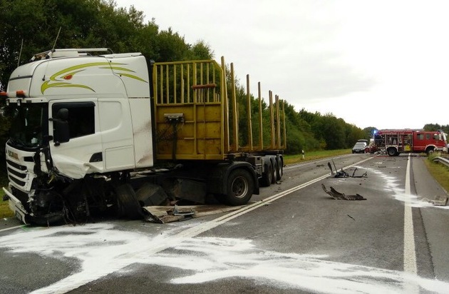 Ein 53-jähriger Pkw-Fahrer war mit seinem Firmenwagen in Richtung Pirmasens unterwegs als er direkt hinter dem Hörnchenbergtunnel aus noch ungeklärter Ursache von der Fahrbahn abkam und in den Gegenverkehr fuhr. Dabei geriet er mit seinem Fahrzeug, einem Opel Signum, direkt nach dem Tunnel in den Gegenverkehr und kollidierte frontal mit einem Lastzug zusammen. Der 53-Jährige aus dem Landkreis Kusel erlitt so schwere Verletzungen, dass er an der Unfallstelle verstarb. Der Fahrer des Holztransporters wurde bei der Kollision leicht verletzt.