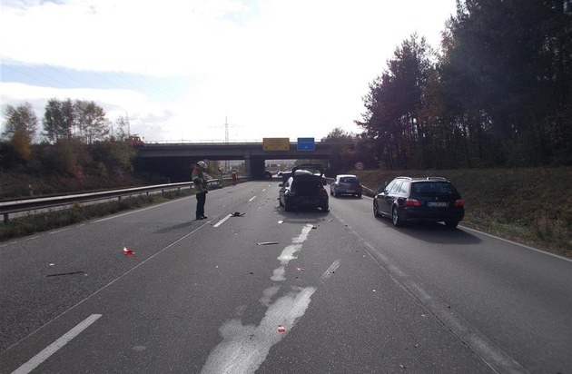 Dieser Unfall ereignete sich gegen 11.55 Uhr auf der B 270 in Fahrtrichtung Kaiserslautern. Hierbei fuhr die 27 jährige Unfallverursacherin auf den vorausfahrenden PKW eines 25 jährigen Mannes auf. Durch die Wucht des Aufpralls wurde dieser PKW noch auf das davor befindliche Fahrzeug einer 77 jährigen Frau geschoben. Sowohl der 25 jährige Mann, als auch die 77 jährige Frau, mussten zuvor wegen Rückstaus von der BAB 6 kommend, verkehrsbedingt anhalten. An dem PKW des 25 jährigen und dem Fahrzeug der Verursacherin entstand Totalschaden. Der PKW der 77 jährigen trug hingegen eher leichte Schäden davon. Alle drei Beteiligten wurden vom Rettungsdienst mit leichten Verletzungen ins Westpfalzklinikum Kaiserslautern verbracht. Die beiden Fahrspuren der B 270 mussten für circa 1 Stunde gesperrt werden. Es kam zu starken Beeinträchtigungen des Verkehrs. Insgesamt waren neben der Polizei auch drei Rettungswagen, ein Notarzt und die Berufsfeuerwehr im Einsatz. Der Sachschaden dürfte sich auf circa 40.000 Euro belaufen.