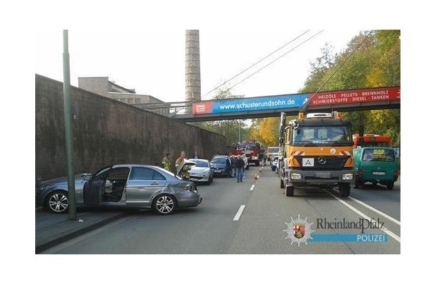 POL-PPWP: Lkw rammt Pkw - gegen Mauer gekracht