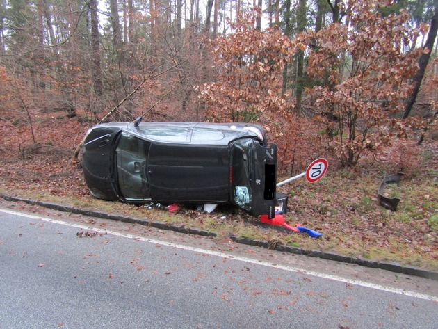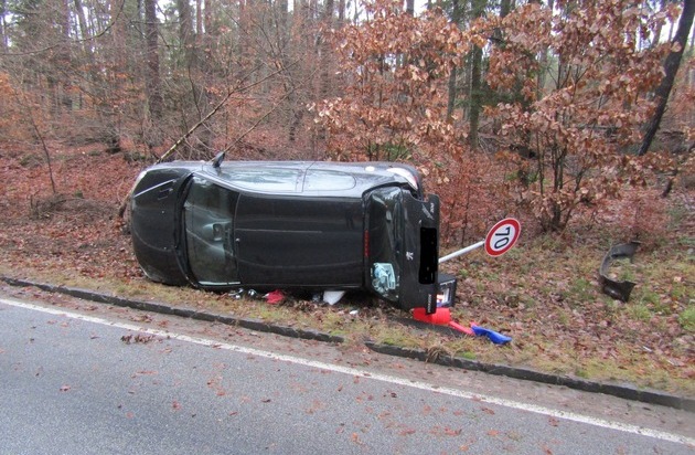 Am Samstagmittag verursachte ein Pkw-Fahrer aus Kaiserslautern einen Unfall, weil er vermutlich seine Geschwindigkeit nicht den Straßenverhältnissen angepasst hatte. Der 24-Jährige befuhr alleine, kurz vor halb zwei, mit seinem Peugeot die K 3 aus Hohenecken kommend in Richtung Kaiserslautern. In einer Linkskurve verlor der Fahrer die Kontrolle über sein Fahrzeug, überschlug sich und prallte gegen ein Verkehrszeichen sowie einen Leitpfosten. Das Fahrzeug kam schließlich im Grünstreifen auf der Seite liegend zum Stehen. Unfallzeugen kamen dem 24-Jährigen zur Hilfe und bargen ihn aus seinem Fahrzeug. Im Rahmen der Unfallaufnahme wurde beim Fahrer Atemalkohol festgestellt. Ein Atemalkoholtest ergab einen Wert von 0,26 Promille.
