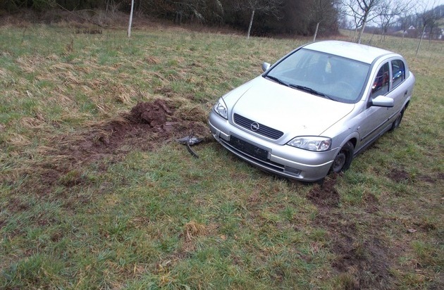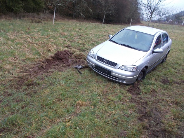 Die Frau war auf der regennassen Fahrbahn offensichtlich zu schnell unterwegs. In einer Rechtskurve, etwa 400 Meter vor Olsbrücken, kam ihr Wagen ins Schleudern und nach links von der Straße ab. Das Auto bügelte einen Leitpfosten. In der Böschung und entgegengesetzt der Fahrtrichtung kam der Pkw schließlich zum Stehen. Vorsorglich eilten Feuerwehr und Rettungsdienst zum Unfallort. Wie sich herausstellte, blieb die Fahrerin bei dem Unfall unverletzt. An ihrem Wagen entstand Sachschaden. Das Auto war nicht mehr fahrbereit und wurde abgeschleppt.