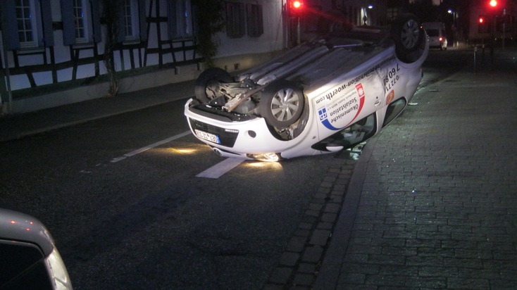Kandel; Am 16.11.2015 befuhr um 06:00 Uhr ein 42-jähriger Verkehrsteilnehmer mit seinem PKW die Markstraße in Richtung Landauer Straße. Beim Einfahren in die Kreuzung missachtete der Fahrer das Rotlicht der Lichtzeichenanlage. Im Kreuzungsbereich kam es zum Zusammenstoß mit dem PKW einer 21-Jährigen die in Richtung Minderslachen fuhr. Durch den Zusammenstoß wurde der Klein-PKW der Fahrerin auf die Seite gelegt. Hierbei verletzte sich die 21-Jährige leicht und musste durch das DRK versorgt werden.