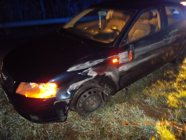 Ein Taxifahrer meldete einen vor ihm fahrenden PKW, der mit Warnblinker und beschädigtem Reifen in der Hainbachstraße unterwegs sei. Eine Polizeistreife stellte den PKW dann auf der B 10 in Höhe Godramstein fest. Der Fahrzeugführer folgte zunächst dem Anhaltezeichen gebenden Polizeifahrzeug. Kurz vor der Ausfahrt von der B 10 wollte der Fahrer sich der Kontrolle entziehen und auf der B 10 weiterfahren, was durch die Streife verhindert werden konnte. Bei dem 22-jährigen Fahrer wurden deutliche Anzeichen auf Alkoholkonsum festgestellt werden. Ein Atemalkoholtest ergab 1,62 Promille. Dem Beschuldigten wurde eine Blutprobe entnommen und sein Führerschein einbehalten. Der von ihm geführte PKW-Audi war auf der Fahrerseite komplett verschrammt, der Vorderreifen platt und die Felge beschädigt. Sachschaden ca. 3000 Euro. Aufgrund der Beschädigungen ist davon auszugehen, dass der Fahrer an einer weißen Mauer oder Hauswand geschrammt ist. Nach eigenen Angaben sei er von der Festhalle in Landau losgefahren und habe nach Albersweiler gewollt. Bislang konnte die Polizei die Unfallstelle noch nicht finden. Etwaige Geschädigte werden gebeten sich mit der Polizei Landau unter 06341-2870 oder per Email an pilandau@polizei.rlp.de in Verbindung zu setzen.