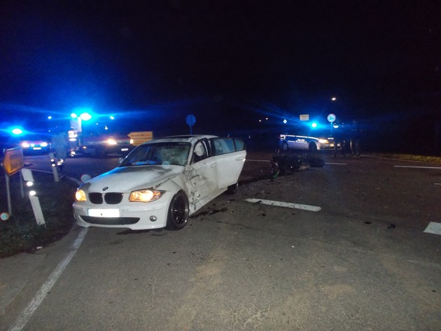 03.11.2016, 05.35 Uhr. Im Kreuzungsbereich L507/K38 kam es zwischen einem 36-jährigen Motorradfahrer aus der Verbandsgemeinde Lingenfeld und einer 34-jährigen Fahrerin eines BMW aus der Verbandsgemeinde Edenkoben zu einem Vorfahrtsunfall, der für den Motorradfahrer tödlich ausging. Die BMW-Fahrerin wollte von Freimersheim in Richtung Zeiskam fahren und übersah den aus Richtung Freisbach kommenden Motorradfahrer. Dieser kollidierte mit ihrer Fahrerseite, als sie die Kreuzung überquerte. Die Frau wurde leicht verletzt und vom Rettungsdienst in ein Krankenhaus gebracht. Die Kreuzung war bis 08.50 Uhr gesperrt.