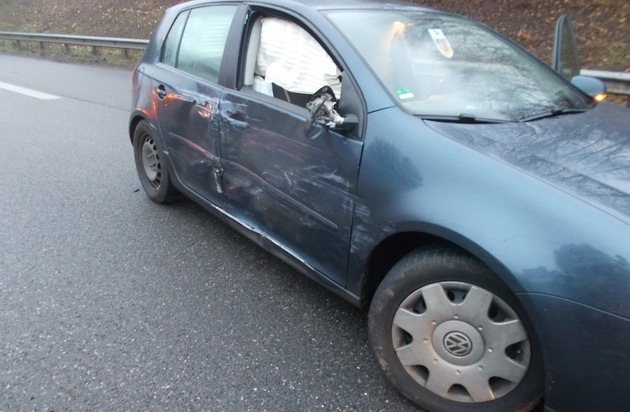 Am 15.12.2016, gegen 07:40 Uhr, musste eine 40jährige Landauerin mit ihrem Pkw verkehrsbedingt auf dem Beschleunigungsstreifen der A65, Auffahrt Landau Süd, in Fahrtrichtung Karlsruhe, halten. Ein 39jähriger Landauer erkannte dies zu spät und fuhr mit seinem Pkw auf den Pkw der Landauerin auf. Er lenkte noch nach links, beschädigte dabei trotzdem seine gesamte rechte Fahrzeugseite und drehte sich um 180°. Er kam auf der rechten Fahrspur zum Stehen. Beide Pkw waren noch bedingt fahrbereit, und konnten die Unfallstelle selbstständig verlassen. Die Gesamtschadenshöhe dürfte ca. 12.000,-EUR betragen. Die rechte Fahrspur war während der Unfallaufnahme für ca. 30min gesperrt, die Absicherung übernahm die Straßenmeisterei Kandel. Es kam im morgendlichen Berufsverkehr zu einem ca. 4km langen Rückstau bis zum Landauer Trog.
